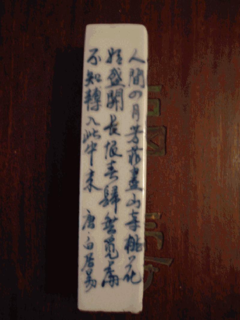 I have been asked to apply to the connoisseurs and find out more information about the old Chinese porcelain seal. Total 12 stamps. These photos were taken from different angles - top, side and seal itself. Dimensions podayutsya - height, then the diameter (if circular), and hand.