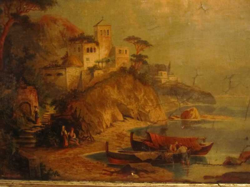 Подписи не нашли на картине. Может она под рамкой... но мы её не рискнули снимать потому что она старая очень. Жалко попортить... Размер хозяин забыл померить. Примерно - 55 на 42. Потом более точный размер скажу. Вот что насочинял хозяин о истории картины - В начале 1900-х годов двоюродный дедушка моей матери плавал на судах Российского Торгового Флота. Периодически приезжая на родину он привозил родственникам разные сувениры из стран в которых довелось побывать. Эту картину он купил в Италии и подарил своей племяннице-моей бабушке. От бабушки она перешла к моей маме, а потом ко мне. |