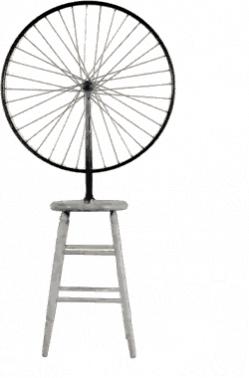 «Это мой первый «редимейд», который даже и не назывался «редимейдом». Видеть, как это колесо крутится, было очень приятно, это успокаивало, приносило умиротворение, это давало прорыв в нечто иное, далекое от повседневной жизни. Мне нравилась идея, что у меня в мастерской есть велосипедное колесо. Я любил смотреть на него, как я люблю смотреть на огонь, пылающий в камине».