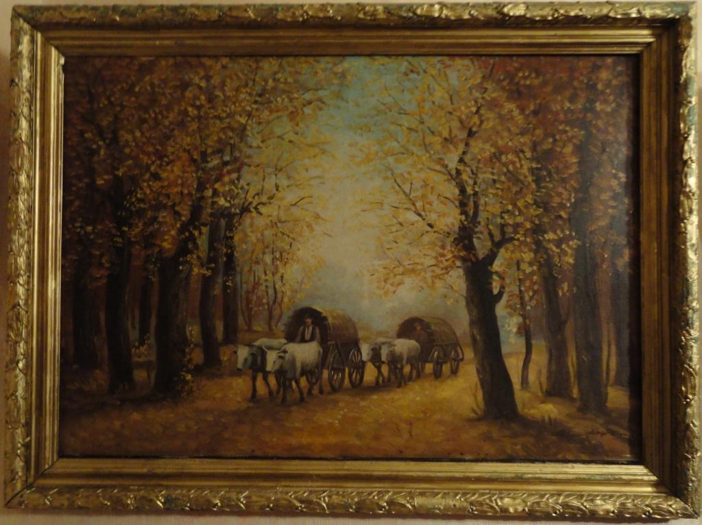Художник - венгр или, менее вероятно, румын. Фамилия, скорее всего, начинается на "Nagy". У всех более-менее известных художников с такой фамилией подписи отличаются от той, что на Вашей картине. Уровень живописи ее невысок. Так что, определить художника можно лишь случайно. Попробуйте поискать на сайте аукциона www.nagyhazi.hu - там очень обширный архив за многие годы с изображениями. Может быть, Вам повезет.