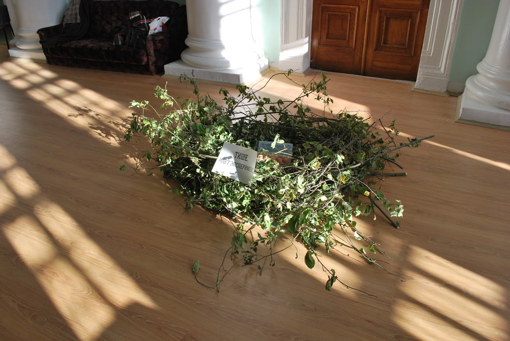"Не срывайте, это важно!" Российский оракул - это проект Григория Ющенко (2010г.). листовки были расклеены по всему пространству выставки. а также по "Лабиринту", устроенному перед входом в здание ДК.