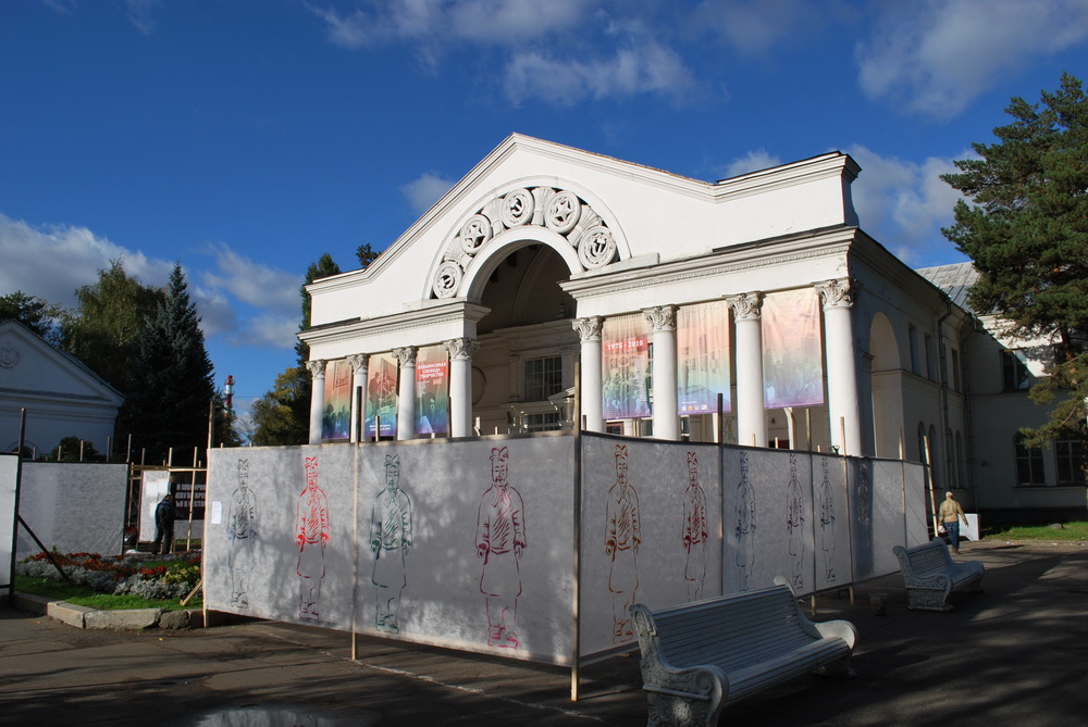 «ДК ВДНХ» или «Дом культуры» - это легендарная выставка 1975 года. Тогда, год спустя после «Бульдозерной», а еще после «Измайлво» и «Пчеловодства» молодые художники при помощи инициативной группы пробили себе экспозиционную площадку и не струсили, когда их под открытие попытались отцензурировать. Это, конечно, не реконструкция выставки 35-летней давности. Это именно воспоминание о ней, посвящение, мемориал. «Невыносимую свободу творчества» (http://artinvestment.ru/news/exhibit...boda_vdnh.html) с выставкой 1975 объединяет главным образом место (которое за треть века не изменилось) и отдельные имена участников. В том числе и представляющих организаторов – нынешнюю выставку сделал тоже Михаил Одноралов. Сейчас надо понимать той молодежи уже крепко за 60. Многие стали корифеями неофициального искусства, классиками. Поэтому решение добавить к работам «стариков» молодой крови было очень правильным.