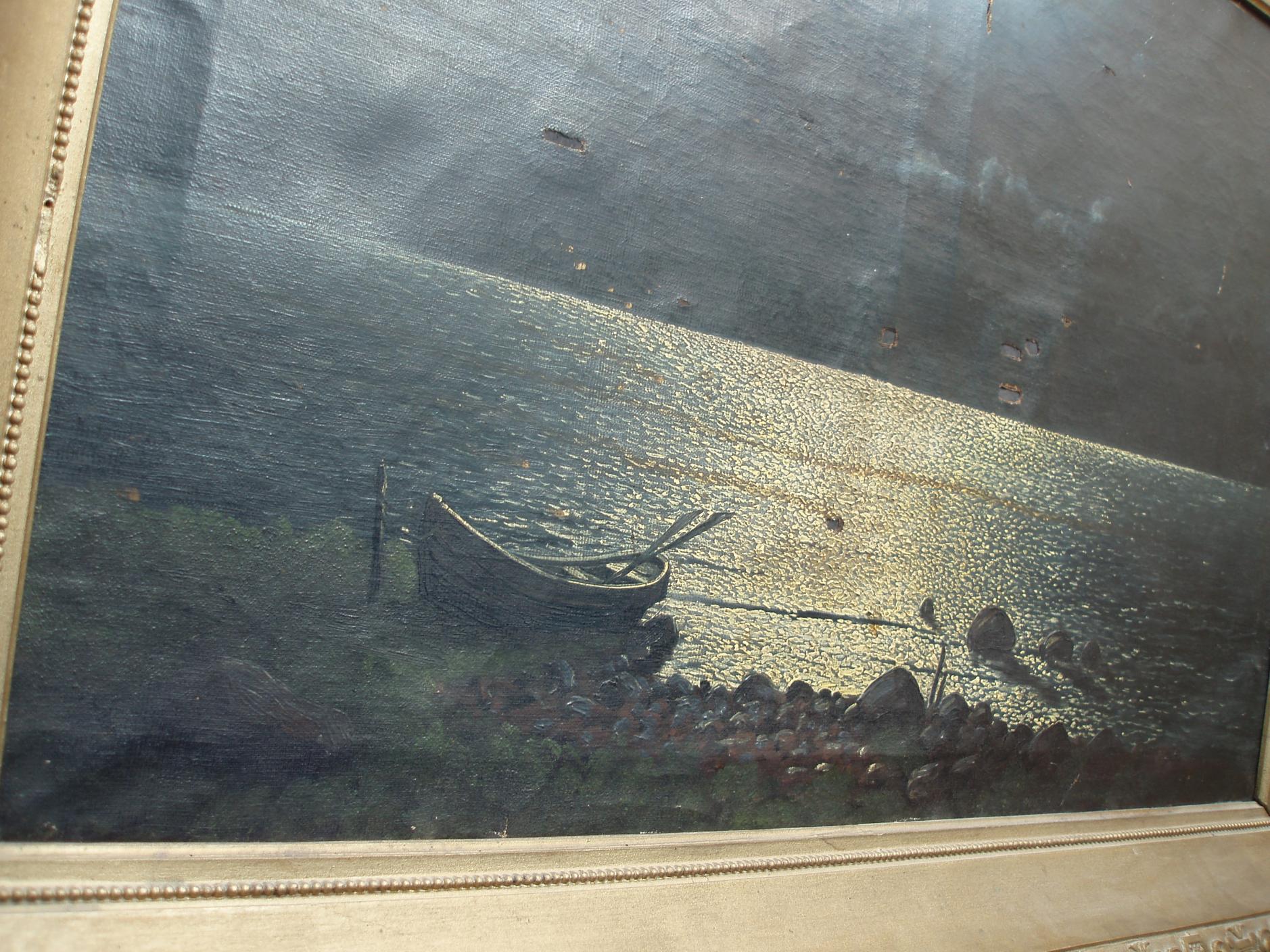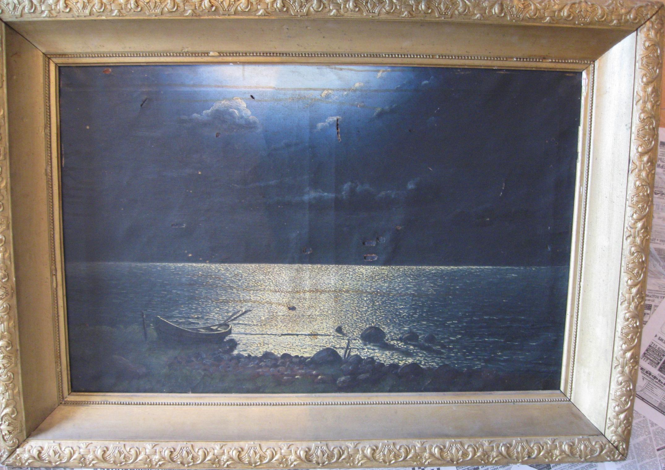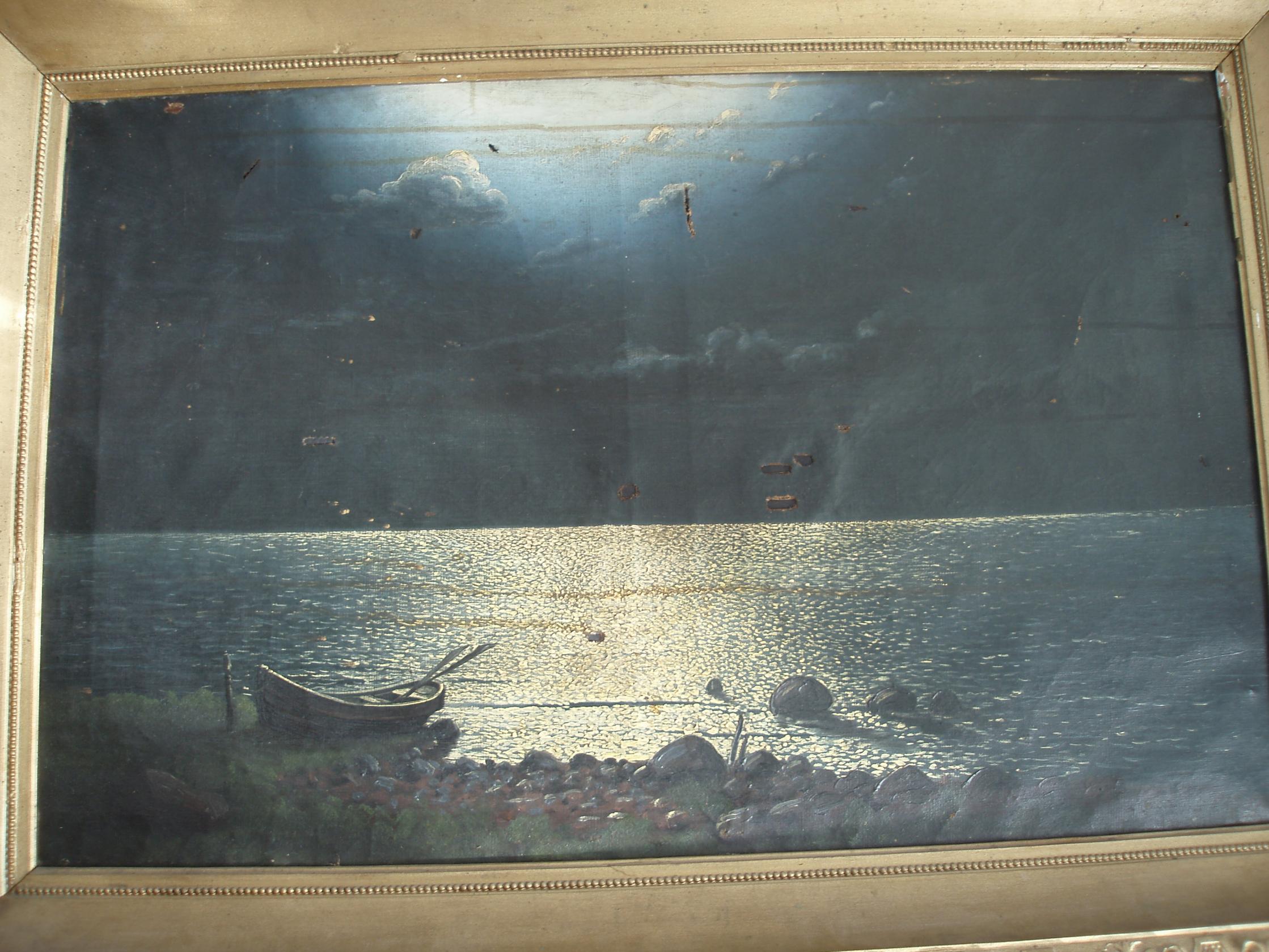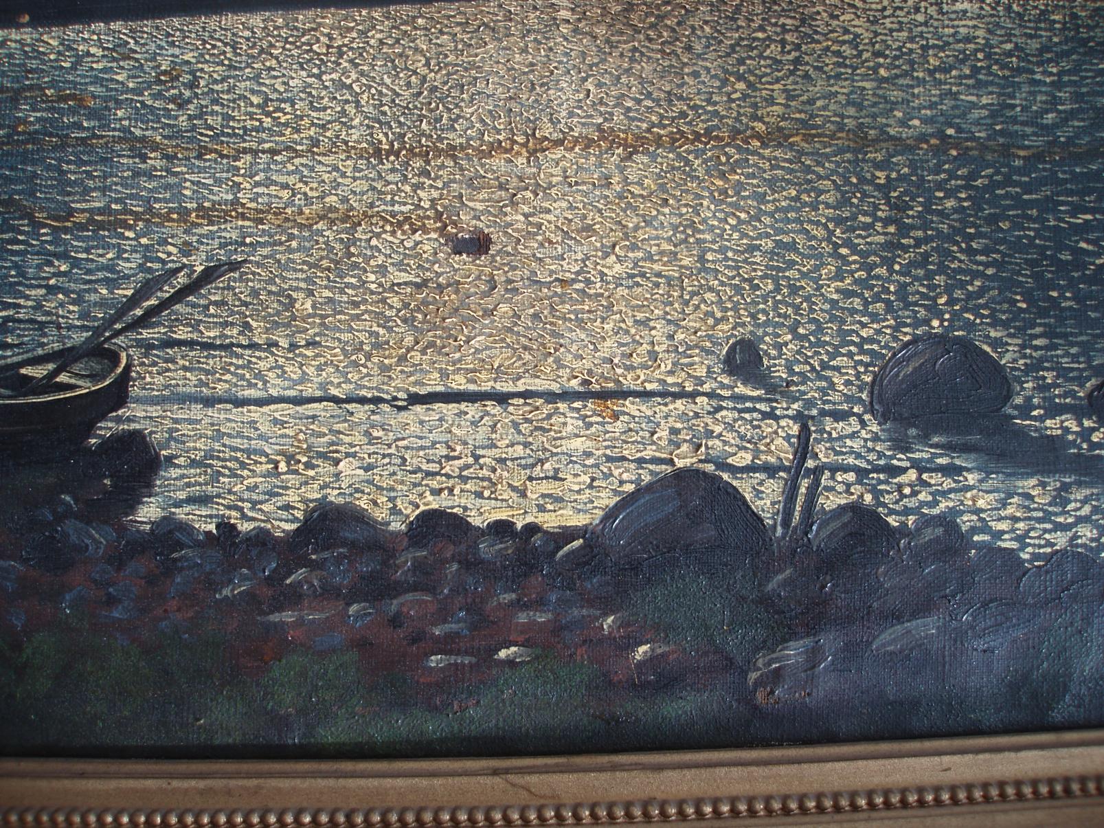 Подрамник дерево. Никаких подписей ни в углах, ни с обратной стороны не видно(не разобрать), так как картину чем то протирали после войны. Все повреждения получены во время войны от снарядных осколков. Мне известно только о том, что до начала войны она находилась в Стрельне, в доме прадеда. В какой момент он её приобрёл информации нет. Помогите,пожалуйста, определить возраст и автора картины. Последний раз редактировалось ольга акатова; 03.10.2010 в 23:30. Причина: фото лучшего качества |
