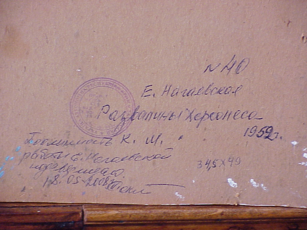 Nagaevskaya EV "The ruins of Chersonese", c /m, the size of 34.5 cm H49, 1952.