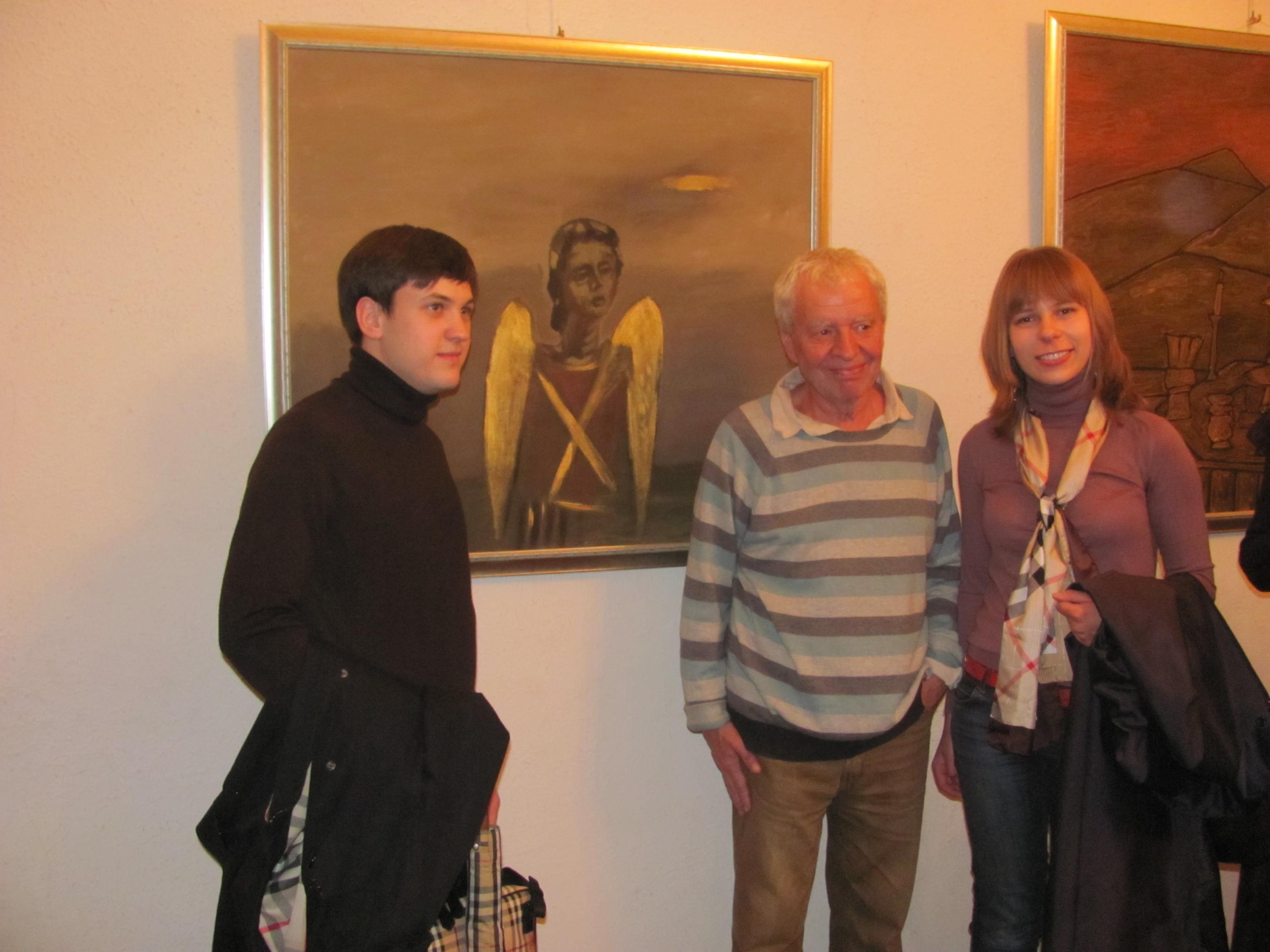 1- коллажи и графика 2 -Елена Судакова (Галерея Г.О.С.Т.) и главный художник Нашего Наследия (он же главный художник альбома Б.Кочейшвили) Александр Рюмин 3 - после официальной части 4 - Картина Плот 5 - Художник и молодые московские коллекционеры |