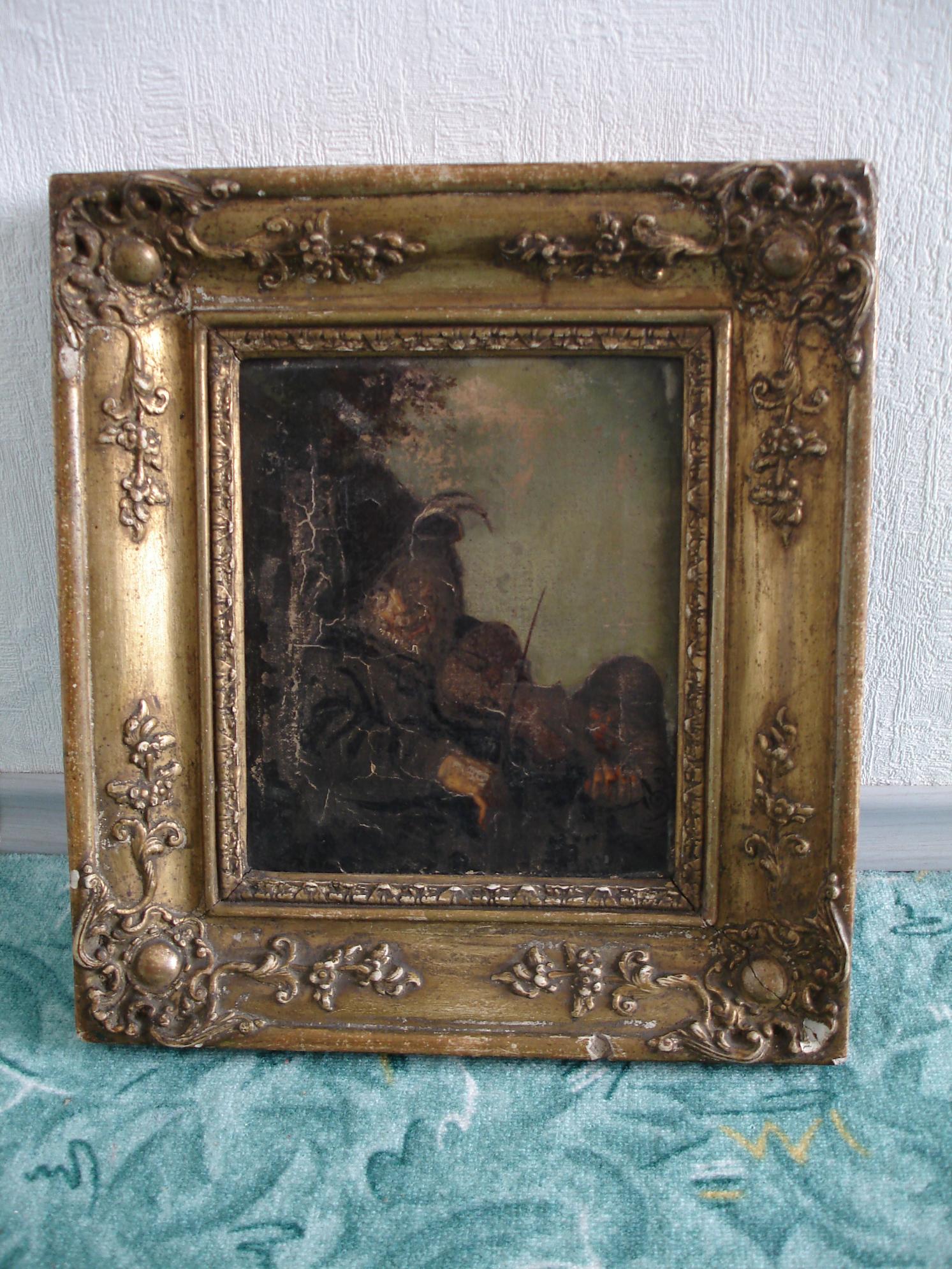 картина неизвестного художника, приблизительно середина 19 века, холст, масло, в раме, размер без рамы 28х24 см, требует реставрации, цена по запросу, находится в С-Петербурге